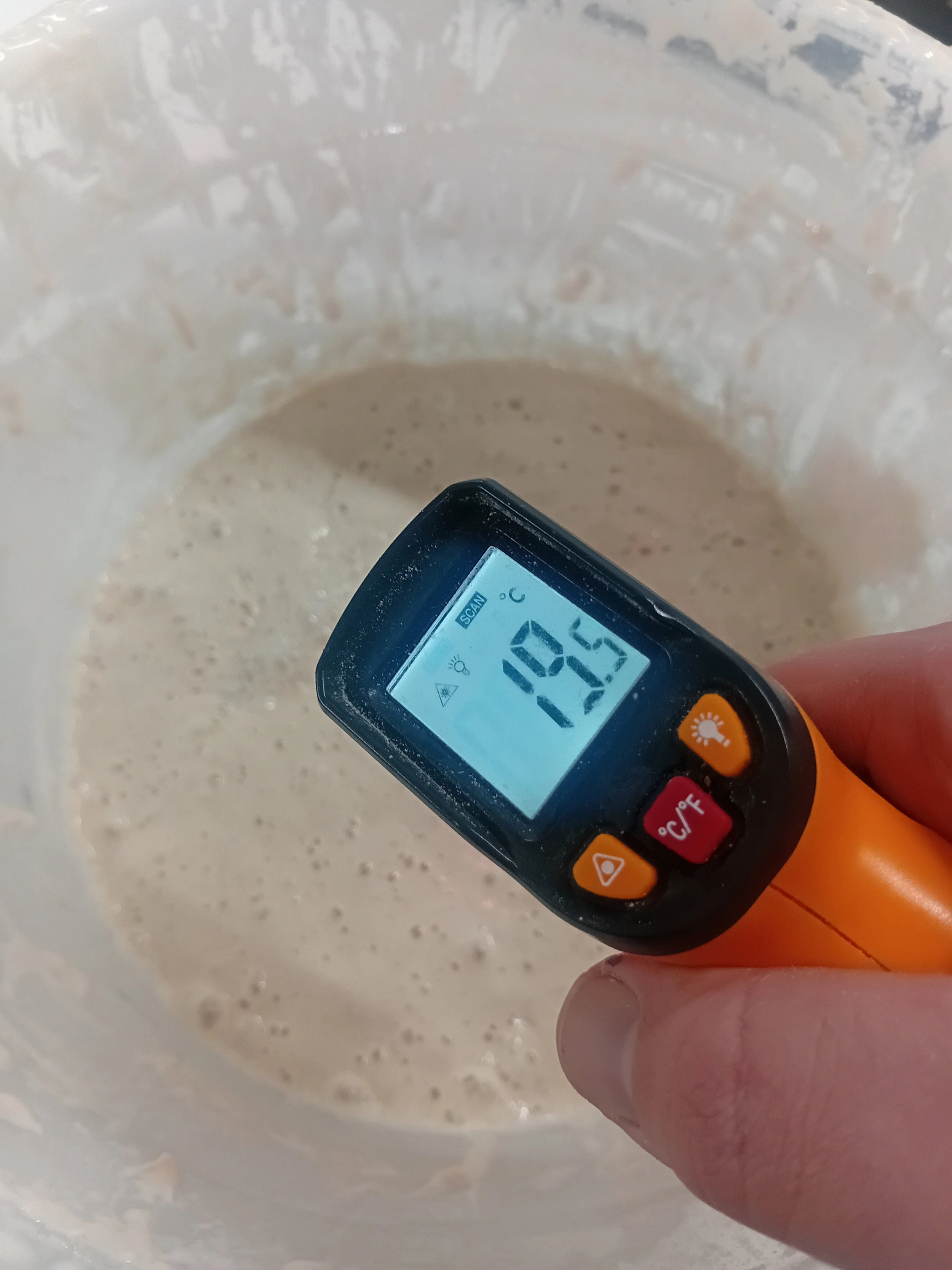 The final reading is the temperature of your sourdough starter. It might have just come out of the fridge, or you might have only fed it 12 hours ago and left it at room temperature. Either way, we need the number. To take all of these readings I recommend a basic laser thermometer if you have one. If not, you can still make this work with a regular probe thermometer.